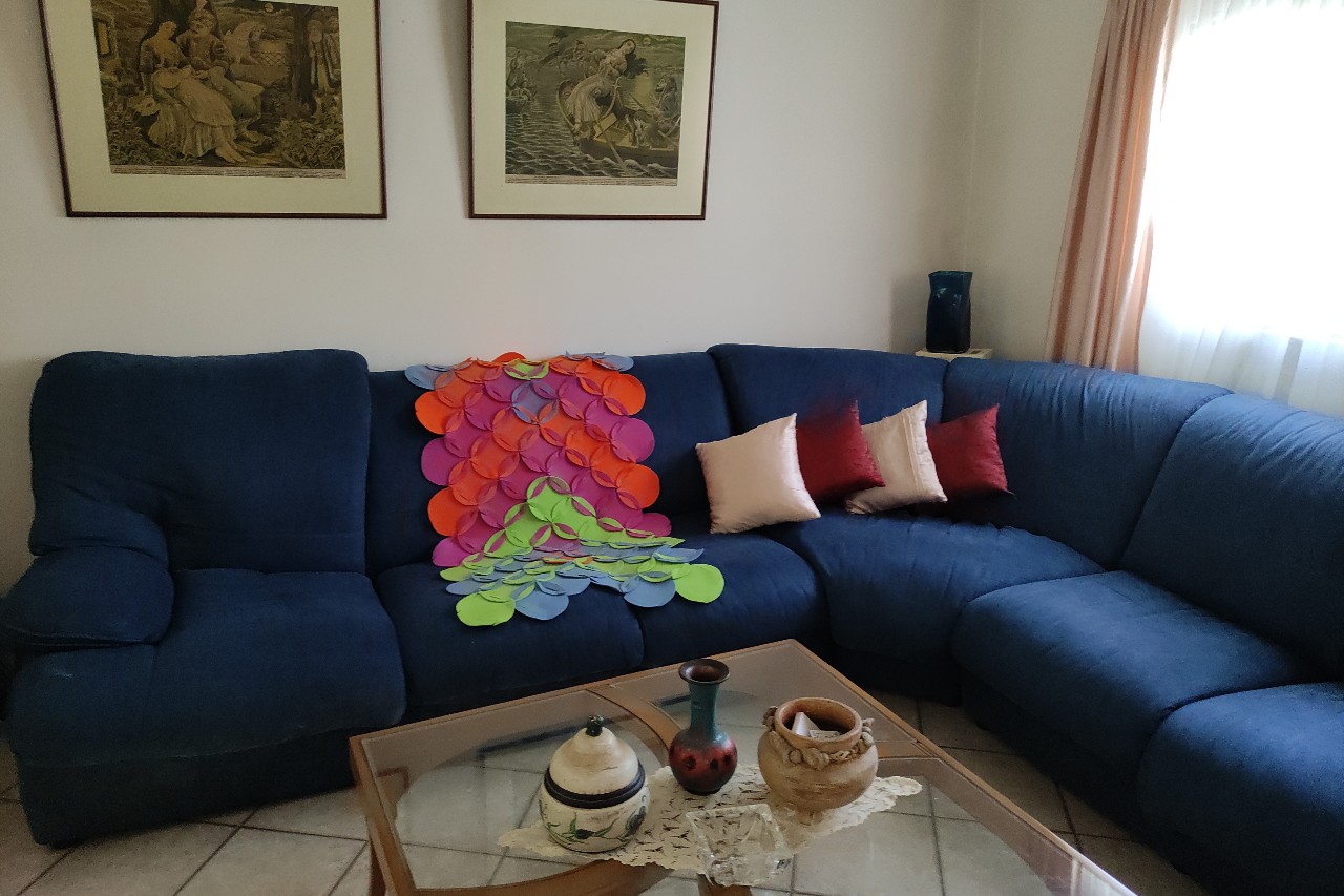 Riešenie pre zručnejších: záclonové “žabky” a krúžky, alebo sa koberec prilepí obojstranným suchým zipsom na pomocnú úzku lištu a tá sa zavesí na stenu.